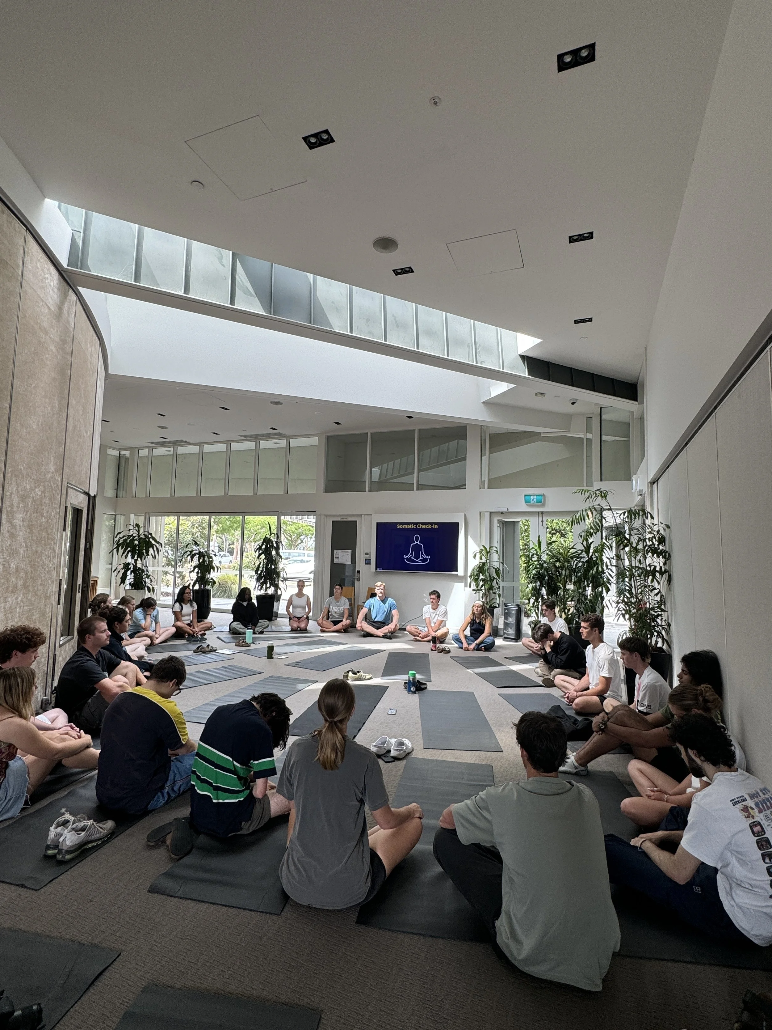 Our workshops provide an immersive, hands-on experience focused on practical stress management techniques, with a special emphasis on breathwork. We explain the science behind these tools and share personal stories to help students relate and connect. Students are guided through the techniques so they can experience their benefits firsthand.